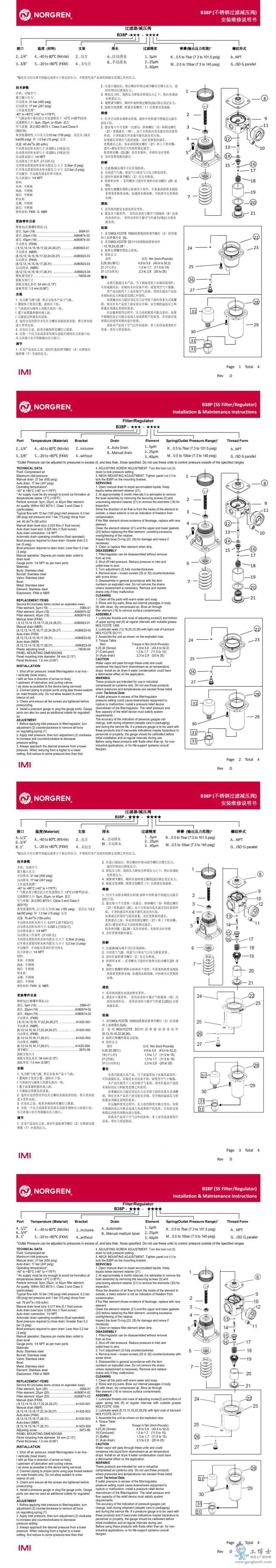 NORGREN諾冠不銹鋼過濾減壓閥B38P-844-M1MA