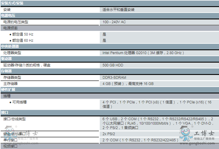 SIMATIC IPC3000 SMART (RACK PC, 19", 4U); PENTIUM DUAL CORE G2010 (2C/2T, 2,8 GHZ, 3 MB CACHE); 500 GBYTE HDD SATA, INTERNAL; 4 GBYTE DDR3 SDRAM (1X 4 GBYTE), SINGLE CHANNEL; DVD+/-RW; INTERFACES: 2X GBIT LAN; 2X SERIAL: 1X COM1 (RS232), 1X COM2 (RS232/422/485); 4X USB BACK; 2X USB FRONT; 1X VGA; 1X DVI-D; 2X PS/2; AUDIO; W/O OPERATING SYSTEM; DEVICE TO BE S