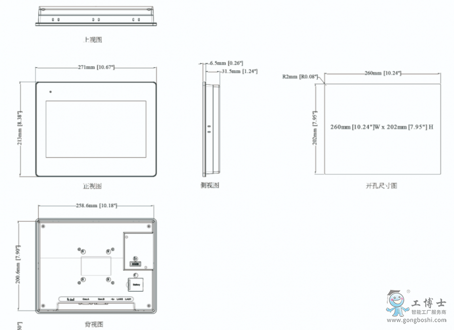 10.1' 1024 x 600 TFT LCD, LED 背光燈