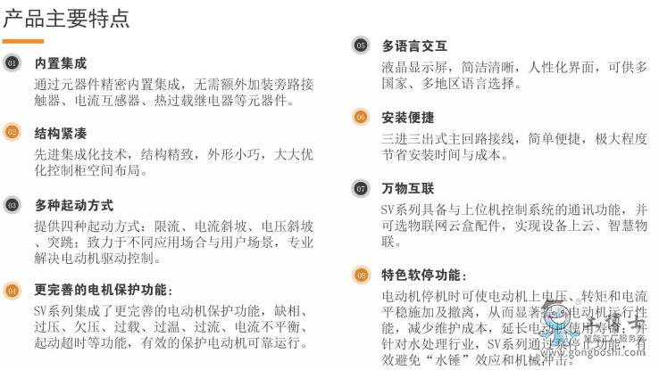 艾克威爾CK70智能內置旁路軟啟動器廣泛應用于水泵、風機和輸送帶、壓縮機、破碎機等重型負載設備。與傳統啟動器相比,使用CK70, 不用額外安裝旁路接觸器,可使電機上電壓、轉矩和電流平穩施加及撤離,從而顯著提高電機運行性能,減少維護成本,延長使用壽命。