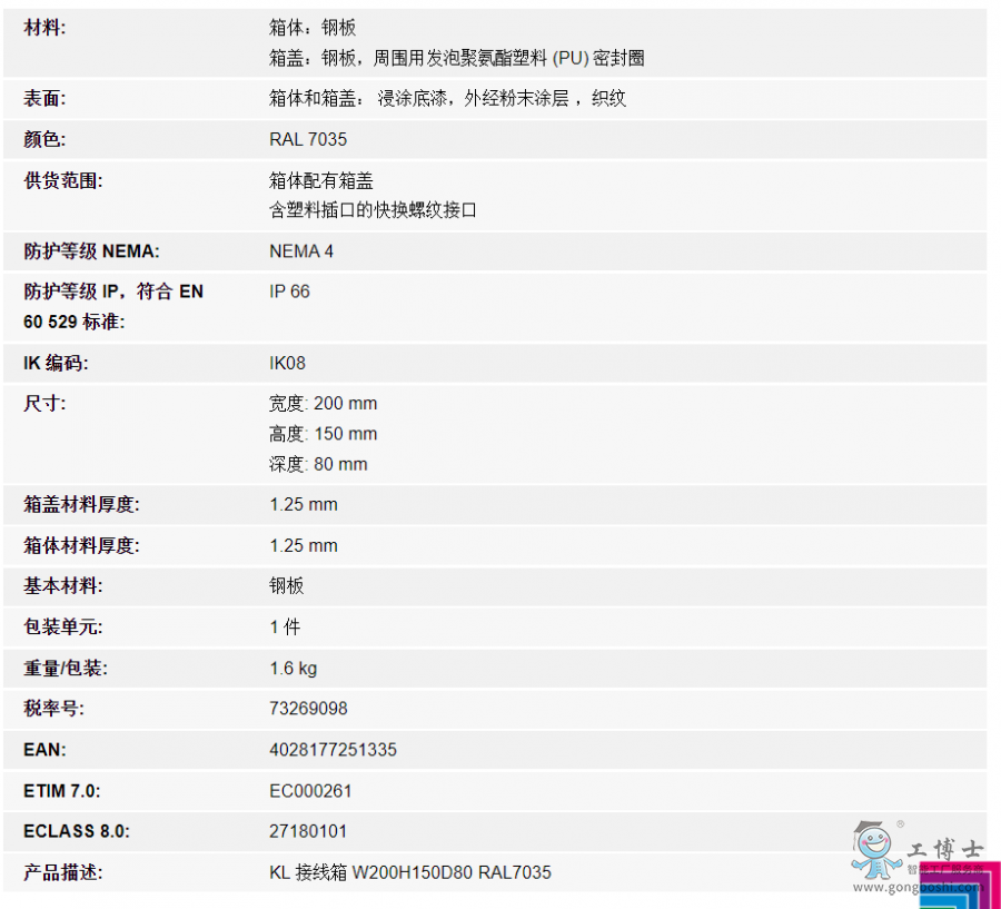 威圖Rittal接線箱 KL 不帶壓蓋板型號1528.510 |