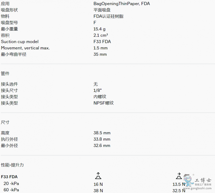 吸盤描述: 由食品級硅材料制成,不含任何顏料,通過FDA (FDA 21 CFR 177.2600) 認證并符合歐盟法規(EU 1935/2004)標準(FDA認證)。吸盤質軟柔韌,工作溫度范圍寬。 吸盤功能: • 設計用于在袋子加注站打開袋子。 • 也適用于處理薄而敏感的紙張,如紙張和塑料薄膜。 • 纖薄、順滑的唇口和巧妙的防滑釘圖案可防止敏感物體/板材被吸入和損壞,同時增強提升力。 • FDA 21 CFR 177.2600 和 EU 1935/2004 批準的有機硅材料。 規格參數:
