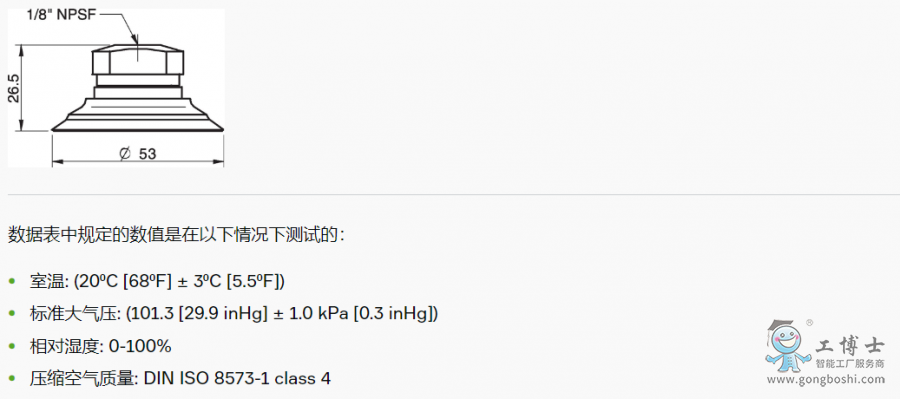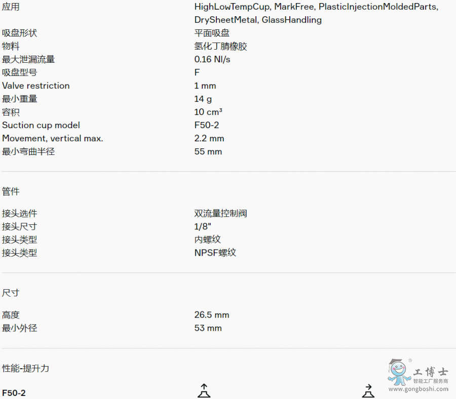 PIAB派亞博 9909463平面吸盤 F50-2 HNBR,1/8“NPSF內螺紋,帶雙流量控制閥