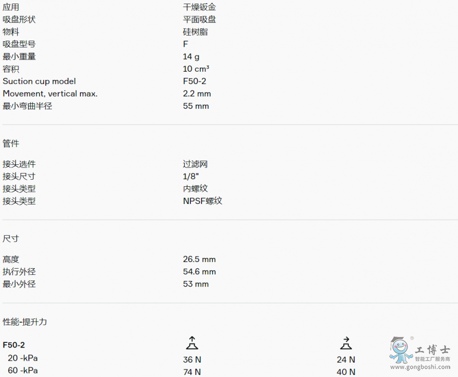 PIAB派亞博 0101753 平面吸盤 F50-2,接口:1/8“NPSF 內螺紋,帶網狀過濾器