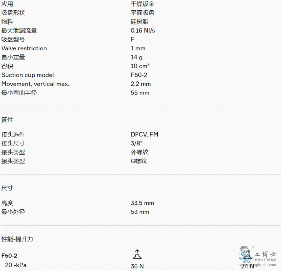 適用于硬紙板、鈑金、玻璃和多孔材料等平坦工件。該吸盤采用夾板結構,不僅可防止工件被吸入吸盤內部而導致變形,而且在提升力平行作用于工件表面時還能增加摩擦力。產品穩定性好,在工作期間幾乎不會發生任何偏移。