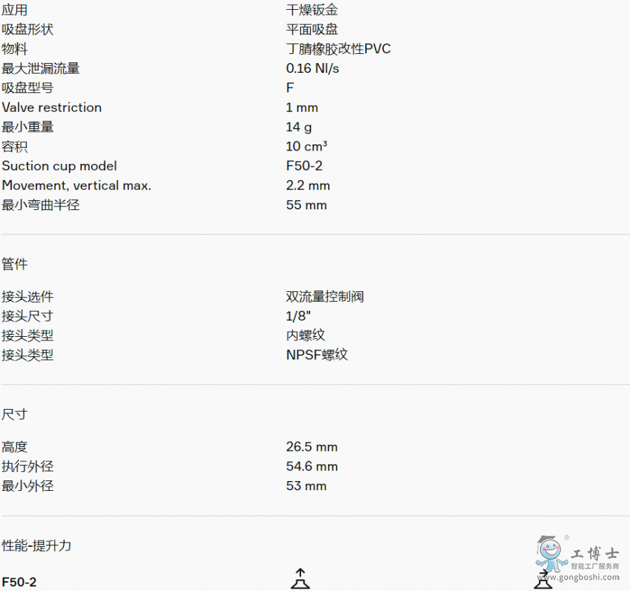 適用于硬紙板、鈑金、玻璃和多孔材料等平坦工件。該吸盤采用夾板結構,不僅可防止工件被吸入吸盤內部而導致變形,而且在提升力平行作用于工件表面時還能增加摩擦力。產品穩定性好,在工作期間幾乎不會發生任何偏移。
