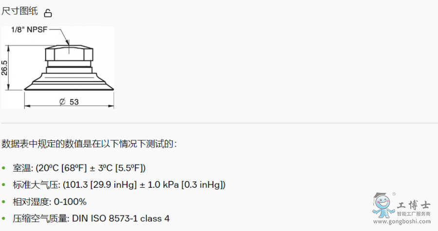 PIAB派亞博 0101773平面吸盤 F50-2 1/8“NPSF內螺紋,帶雙流量控制閥