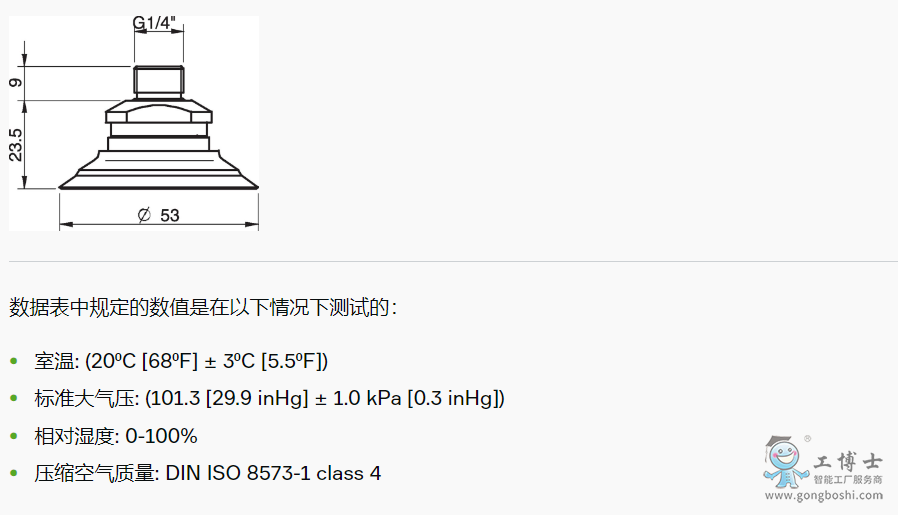PIAB派亞博9909458平面吸盤 F50-2 G1/4“ 外螺紋, 帶網狀過濾器和雙流量控制閥