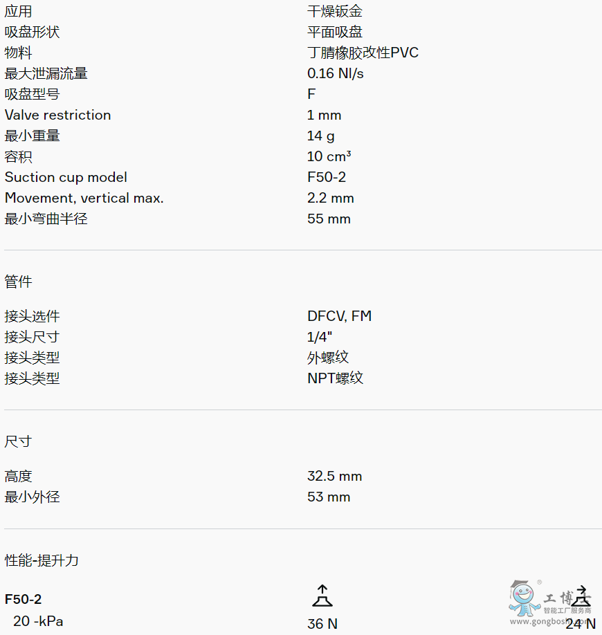 適用于硬紙板、鈑金、玻璃和多孔材料等平坦工件。該吸盤采用夾板結構,不僅可防止工件被吸入吸盤內部而導致變形,而且在提升力平行作用于工件表面時還能增加摩擦力。產品穩定性好,在工作期間幾乎不會發生任何偏移。