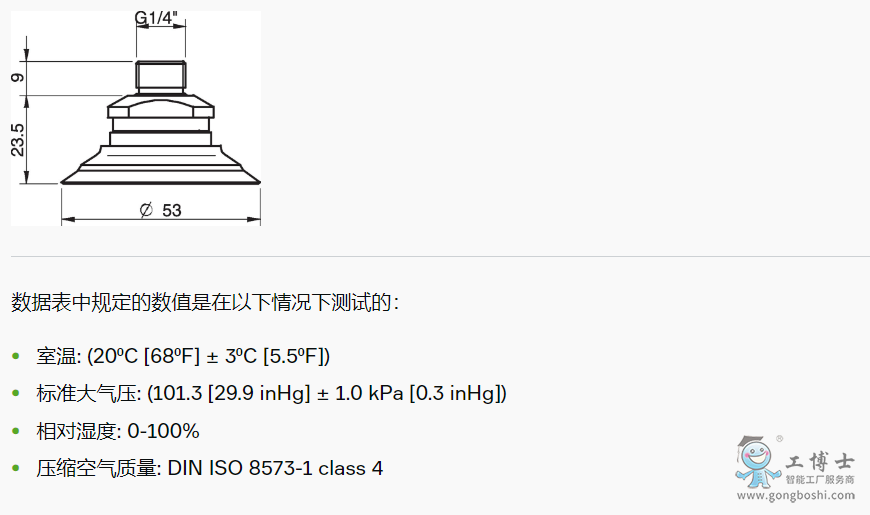 PIAB派亞博 0101775平面吸盤 F50-2 1/4“ NPT 外螺紋, 帶雙流量控制閥