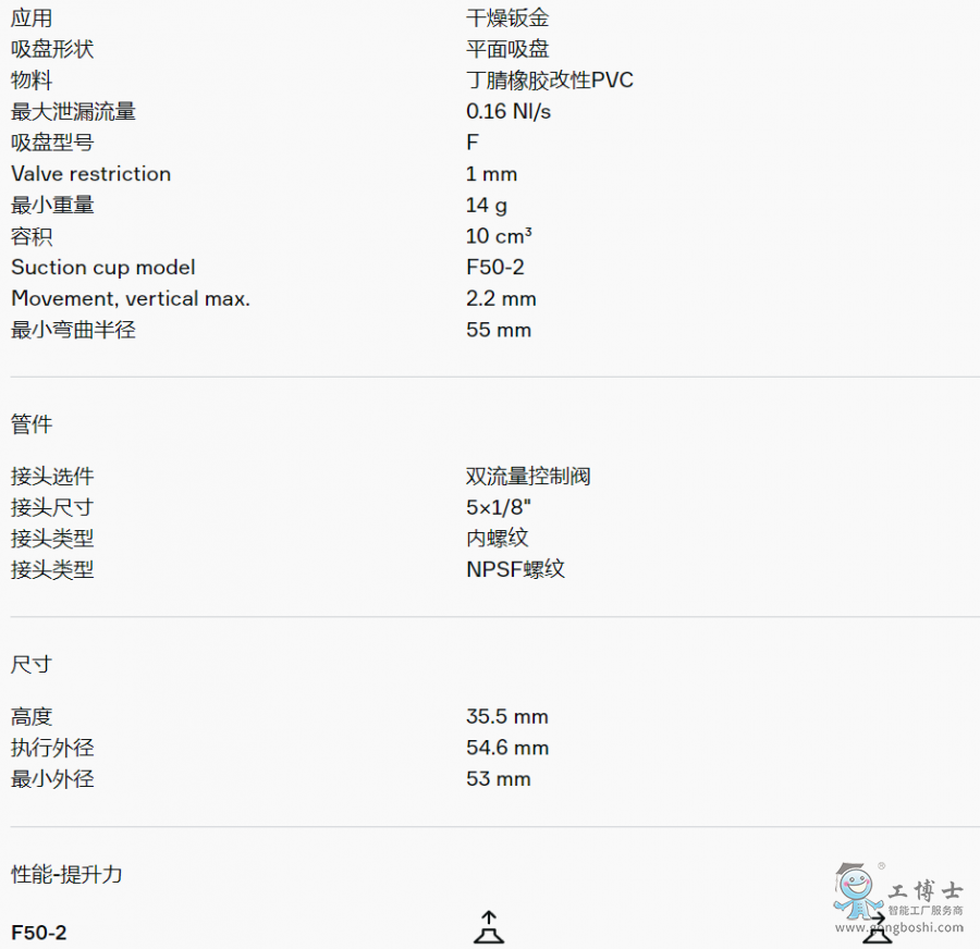 適用于硬紙板、鈑金、玻璃和多孔材料等平坦工件。該吸盤采用夾板結構,不僅可防止工件被吸入吸盤內部而導致變形,而且在提升力平行作用于工件表面時還能增加摩擦力。產品穩定性好,在工作期間幾乎不會發生任何偏移。