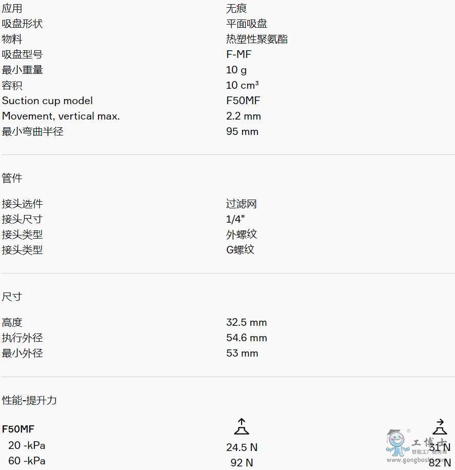 PIAB(派亞博)0101786 無痕平面吸盤F50MF 尺寸:G1/4“ 外螺紋,帶篩網過濾器