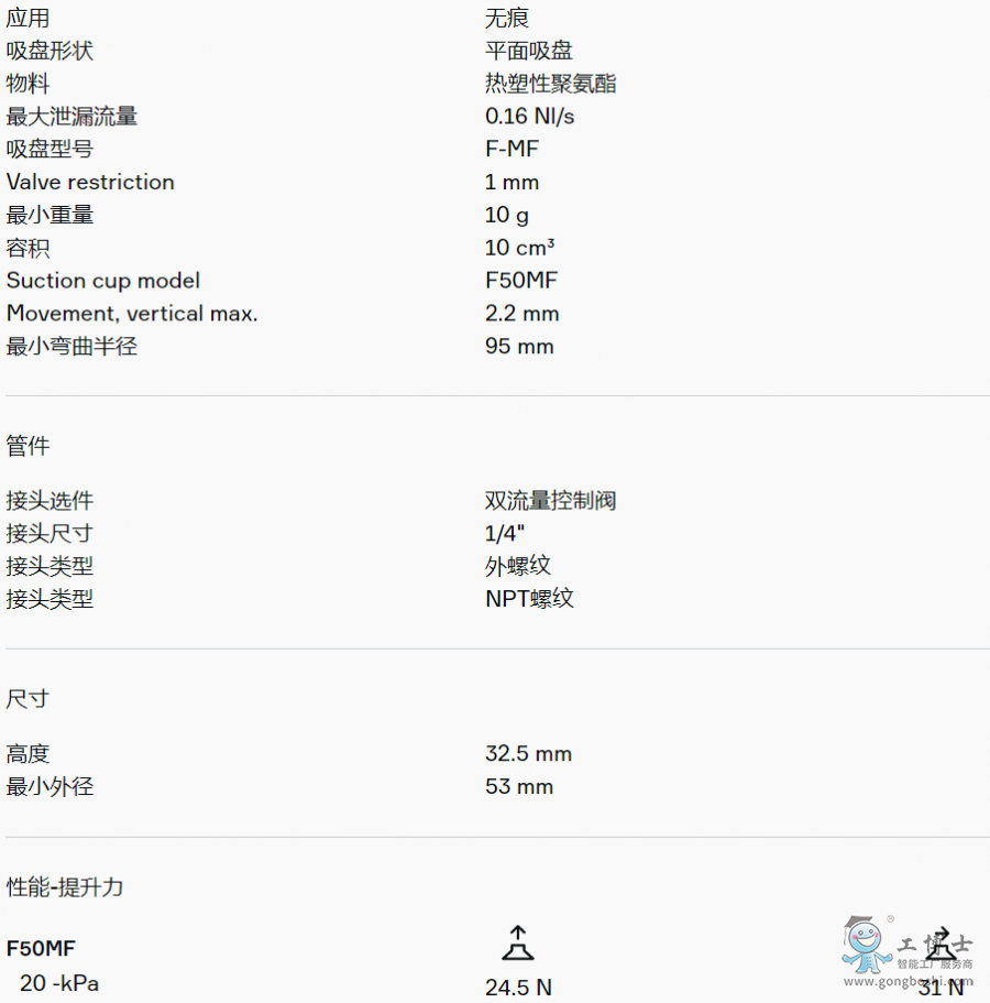 由熱塑性聚氨酯彈性體 (TPU) 無痕材料制成,在搬運工件時絲毫不留痕跡。適用于平坦表面。該吸盤采用夾板結構,不僅可防止工件被吸入吸盤內部而導致變形,而且在提升力平行作用于工件表面時還能增加摩擦力。產品穩定性好,在工作期間幾乎不會發生任何偏移。