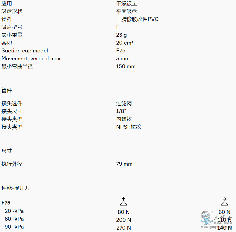 適用于硬紙板、鈑金、玻璃和多孔材料等平坦工件。該吸盤(pán)采用夾板結(jié)構(gòu),不僅可防止工件被吸入吸盤(pán)內(nèi)部而導(dǎo)致變形,而且在提升力平行作用于工件表面時(shí)還能增加摩擦力。產(chǎn)品穩(wěn)定性好,在工作期間幾乎不會(huì)發(fā)生任何偏移。