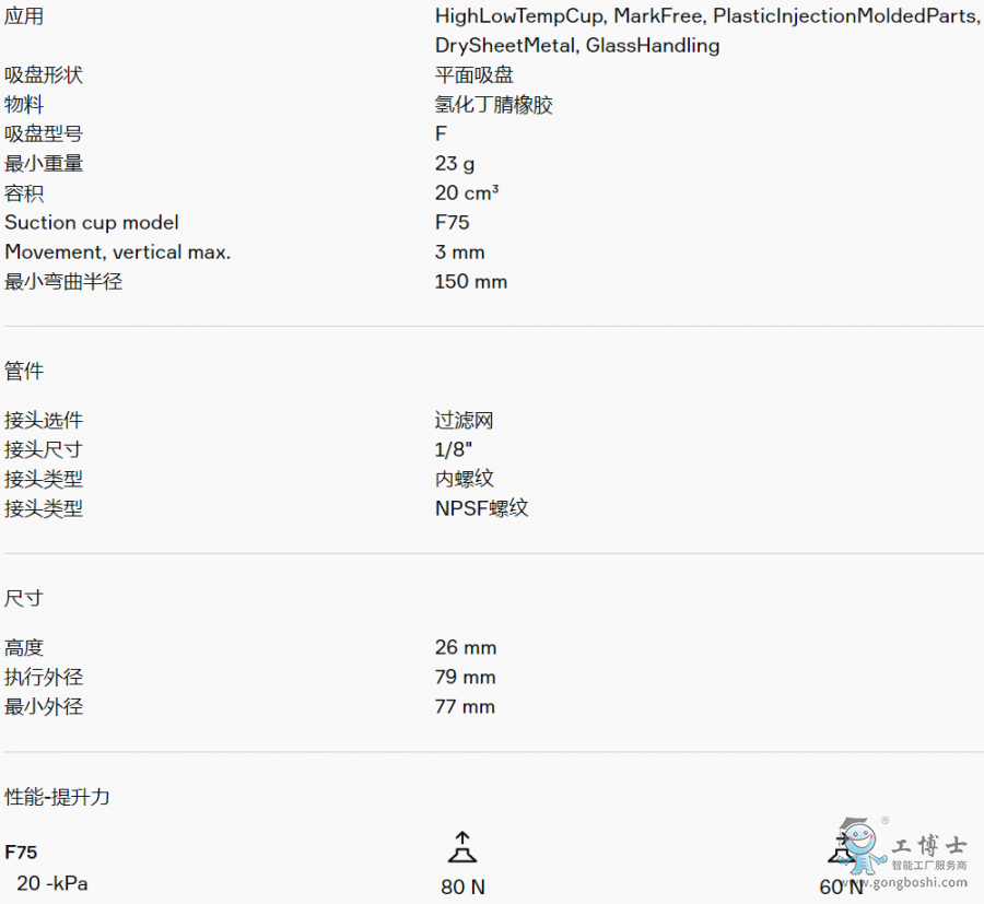 適用于硬紙板、鈑金、玻璃和多孔材料等平坦工件。該吸盤采用夾板結(jié)構(gòu),不僅可防止工件被吸入吸盤內(nèi)部而導致變形,而且在提升力平行作用于工件表面時還能增加摩擦力。產(chǎn)品穩(wěn)定性好,在工作期間幾乎不會發(fā)生任何偏移。