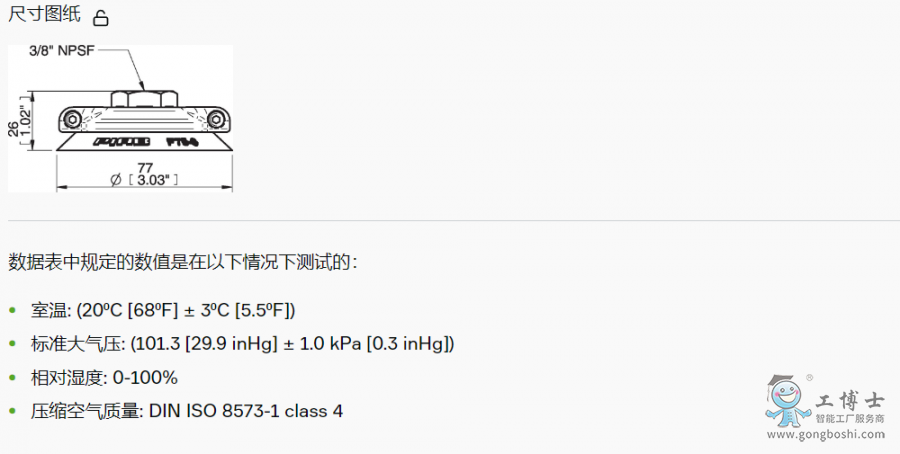 PIAB(派亞博) 0108186 平面吸盤F75 3/8“ NPSF 內螺紋, 帶篩網過濾器