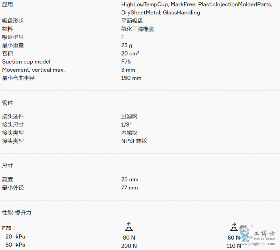 適用于硬紙板、鈑金、玻璃和多孔材料等平坦工件。該吸盤采用夾板結構,不僅可防止工件被吸入吸盤內部而導致變形,而且在提升力平行作用于工件表面時還能增加摩擦力。產品穩定性好,在工作期間幾乎不會發生任何偏移。