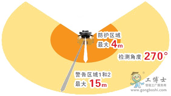 機身雖小,卻可 實現4m∗的防護區域 和270°的檢測角度。