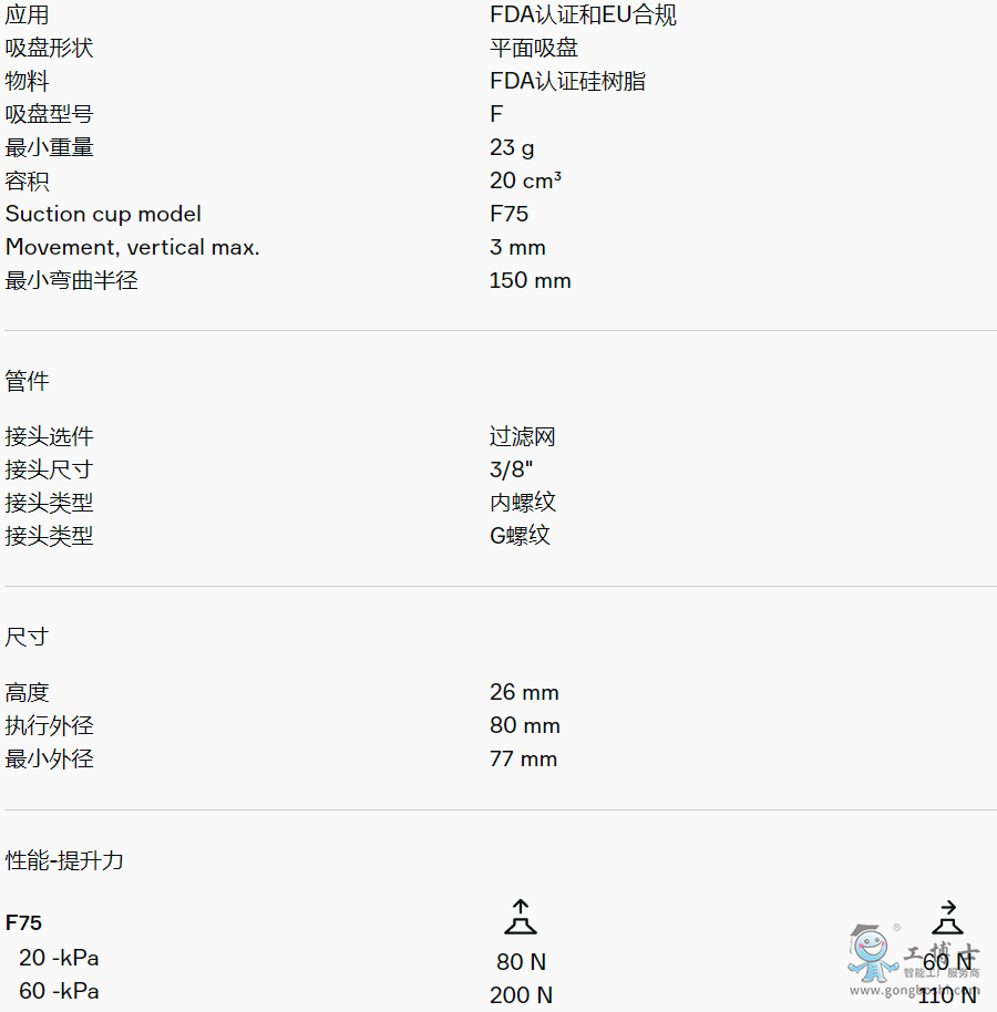 PIAB(派亞博) 0200497 平面吸盤F75FCM