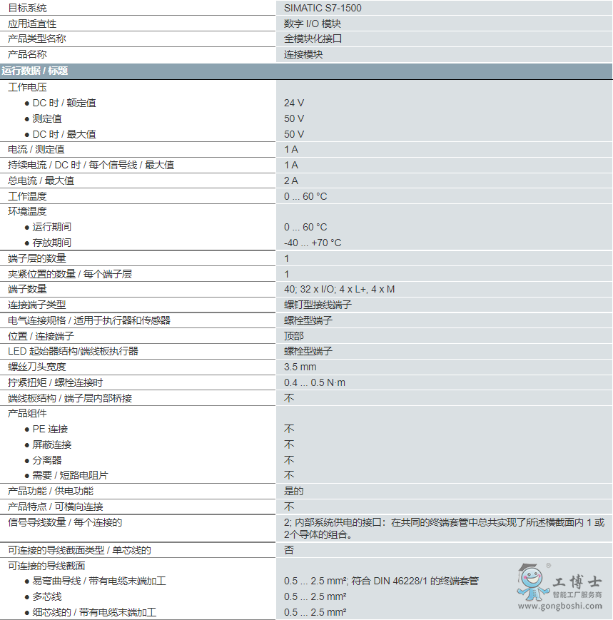 連接模塊 TP1 32 通道和 4x2 端子,用于 內部系統供電 類型:螺旋端子 沒有 LED,包裝單位 =1 件 50 極 IDC 接口,用于電纜。