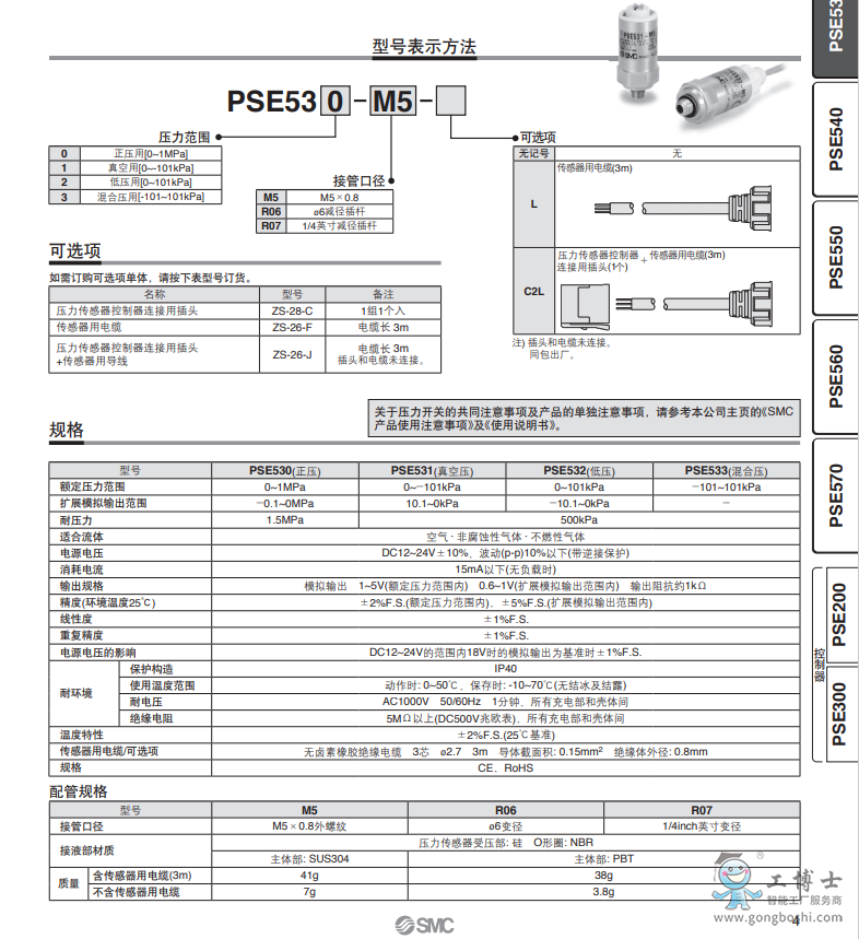 SMC壓力傳感器 分離型 PSE532-M5-L