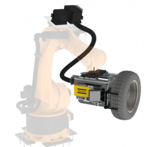 接下來,機(jī)器人在視覺系統(tǒng)引導(dǎo)下將輪胎裝配到剎車盤上,