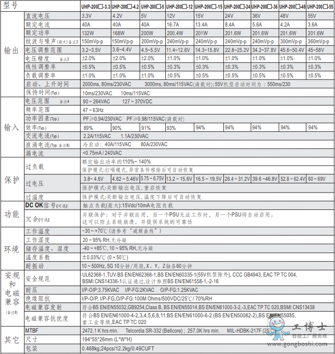 由于UHP-1000強大與多元的控制接口與彈性化散熱接口選擇,產品應用范圍非常廣泛,可以從一般工控恒壓到充電恒流應用。半灌膠設計使UHP-1000成為堅固、纖薄的無風扇電源,也可抵抗震動和灰塵的進入,并具有相當長的使用壽命。符合IEC / EN / UL 62368-1的國際安規要求,并可根據客戶需求提供EN61558-1和家庭安規EN60335-1的申請。除了可以在-30℃ ~ +70℃的寬溫度范圍內工作,并能用在全范圍的AC輸入電源,同時也可在5000m的高海拔區域操作。另外,UHP-1000 有12V、24V、36V和48V四個機型,輸出電壓范圍寬廣,可以適用于各種系統。