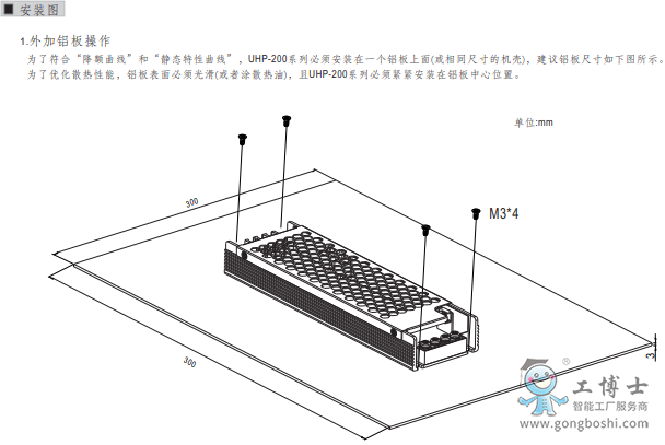 6. 電源應視為系統內元件的一部分,所有的EMC測試都將測試樣品安裝在一個厚度1mm,長360mm*寬360mm的金屬鐵板上測試。
