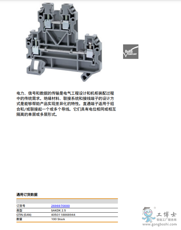 Weidmuller SAKDK 2.5 魏德米勒 直通型接線(xiàn)端子 訂貨號(hào)2696970000