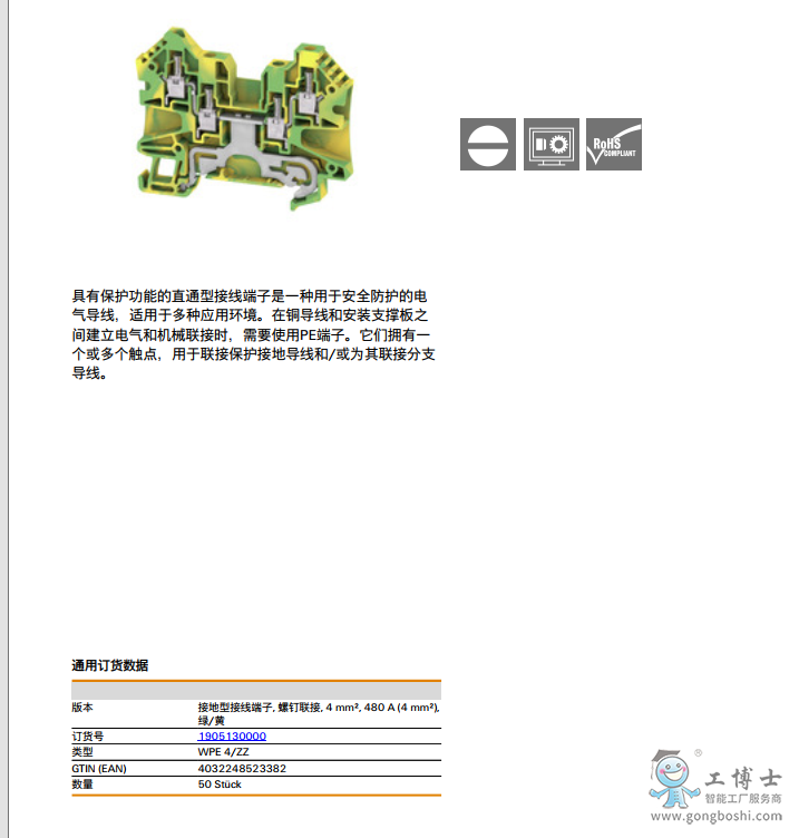 Weidmuller WPE 4/ZZ 魏德米勒 接地型接線端子 訂貨號1905130000 |