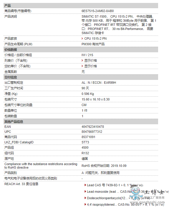 西門子PLC 6ES7515-2AM02-0AB0 S7-1500 CPU 1515-2 PN |
