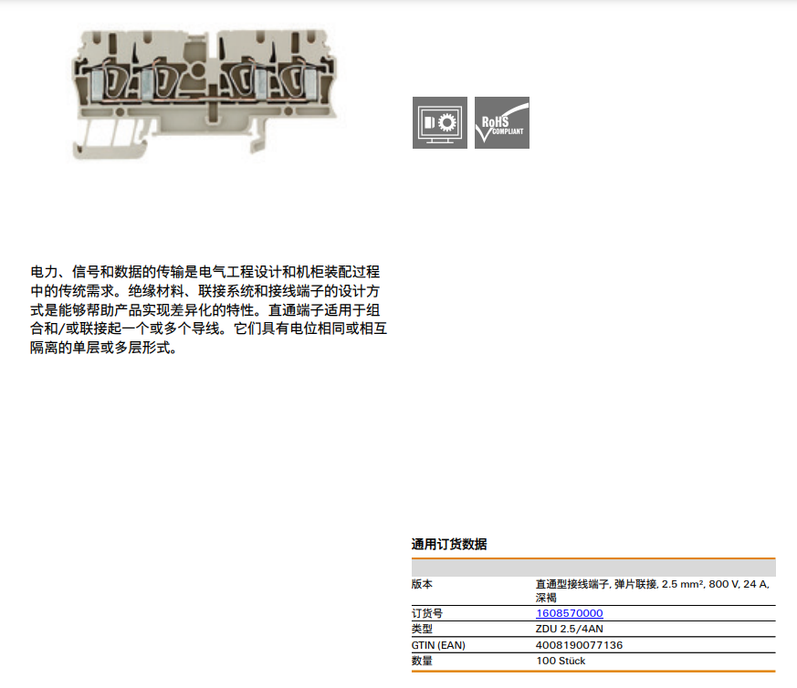 Weidmuller ZDU 2.5/4AN 魏德米勒 直通型接線端子 |