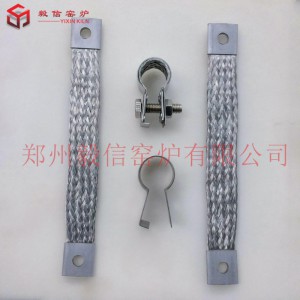 一體夾,這種單環或雙環,連接帶一起的硅碳棒夾具,常用于直徑較大的硅碳棒,安裝方便,螺絲緊固,編織帶的長度可以訂做。
