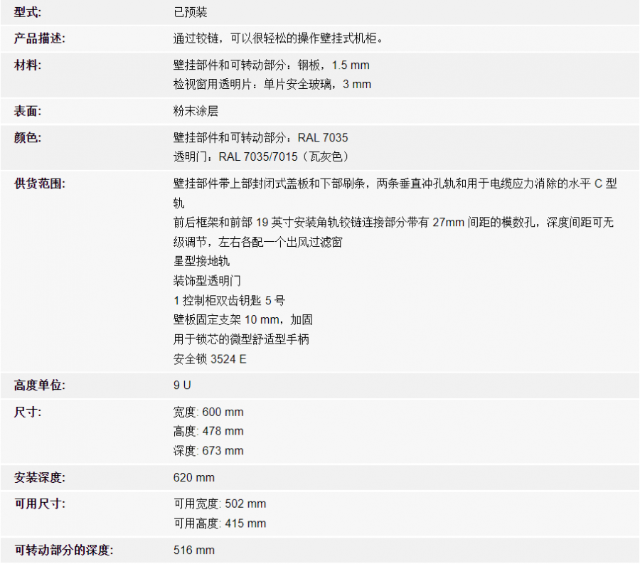 rittal威圖 7709.535 壁掛式箱體 EL, 3 段式 預(yù)裝有安裝角軌,深度可調(diào)