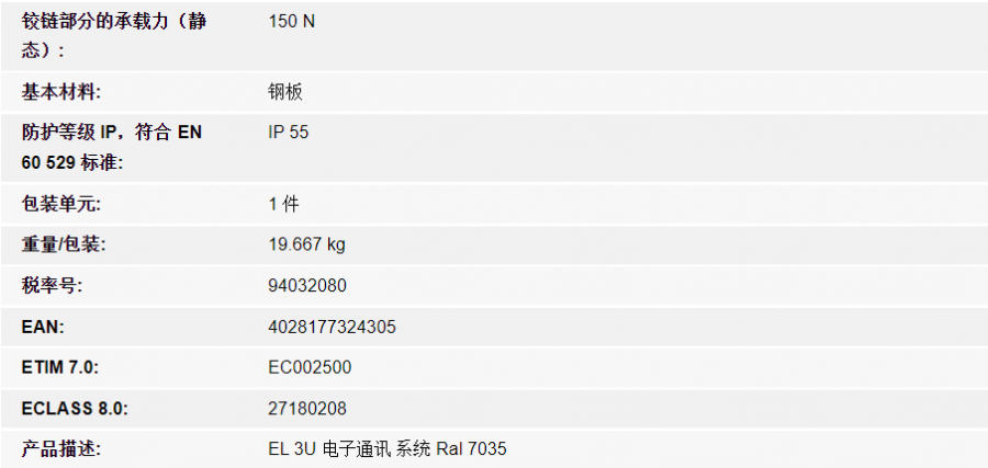 rittal威圖 2243.605 壁掛式箱體 EL, 3 段式 配有安裝板和安裝角軌,固定安裝