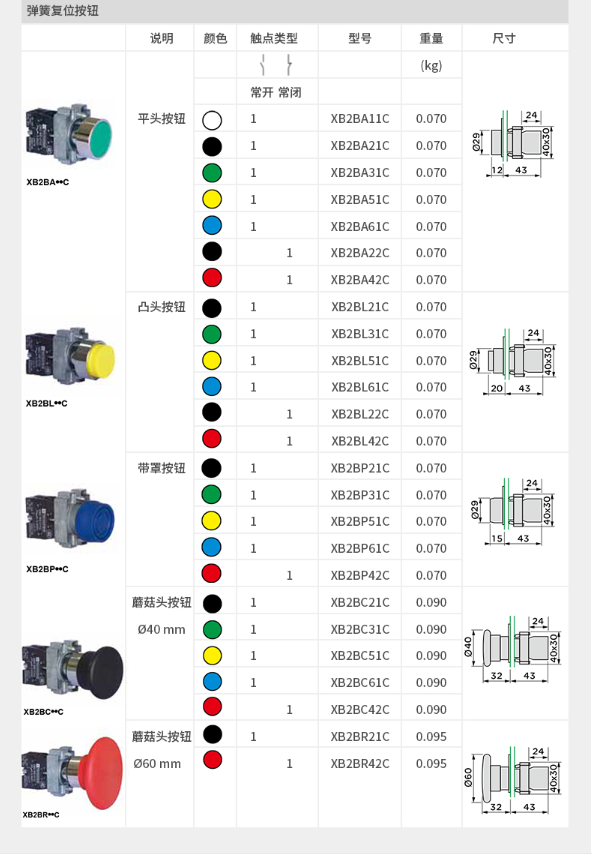 Schneider/施耐德電氣XB2BA11C帶燈平頭按鈕