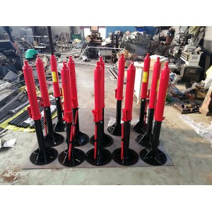 6、在合適位置挖好坑,先把托盤插入坑內,再把底座頂在托盤上,然后調節千斤頂,把線桿調直即可