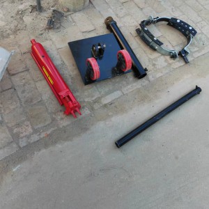 3、把千斤頂和底座連接好,螺絲擰緊,再把千斤頂上部和頂桿連接,擰緊螺絲