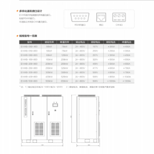 EVWB-050-1000,額定功率50kW,峰值功率75kW,外形尺寸800x1800x980mm;