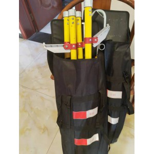 4. 接完后:用風(fēng)繩栓在鉤一側(cè)的環(huán)內(nèi),一人穩(wěn)住底部,一人拉繩,一到二人往起立,根據(jù)梯子的長(zhǎng)短限定人數(shù),立起后把掛鉤勾在承力索或其它能固定的地方。