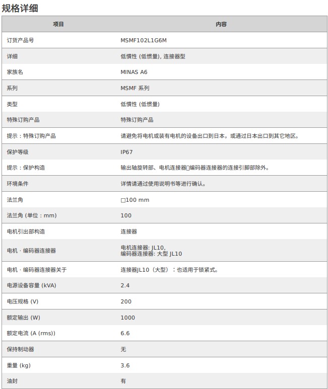 松下伺服電機MSMF低慣量電機MSMF102L1G6M 50W-22kW 響應頻率3.2kHz