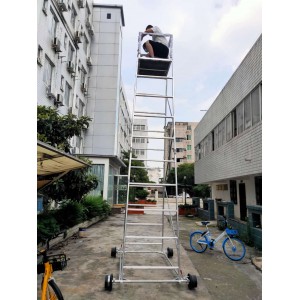 梯身及底架均可快速分解,便于搬遷。 帶有防制動器,既防傾倒,又便于在斜道上作業。 工作臺可以調節高度,便于運輸梯車高度用戶可根據情況自行確定。