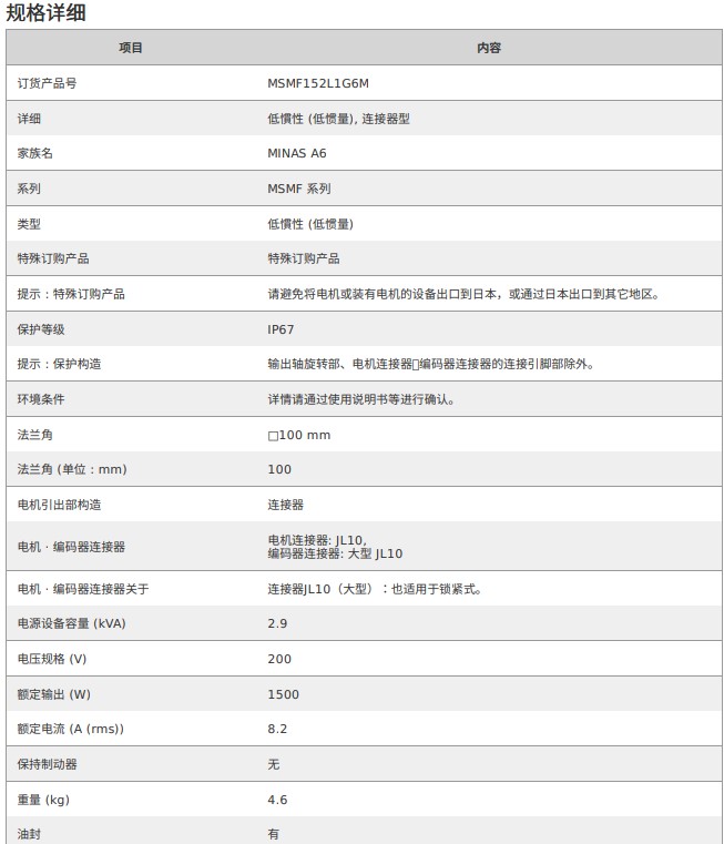 松下伺服電機 MSMF低慣量電機MSMF152L1G6M 50W-22kW 響應頻率3.2kHz