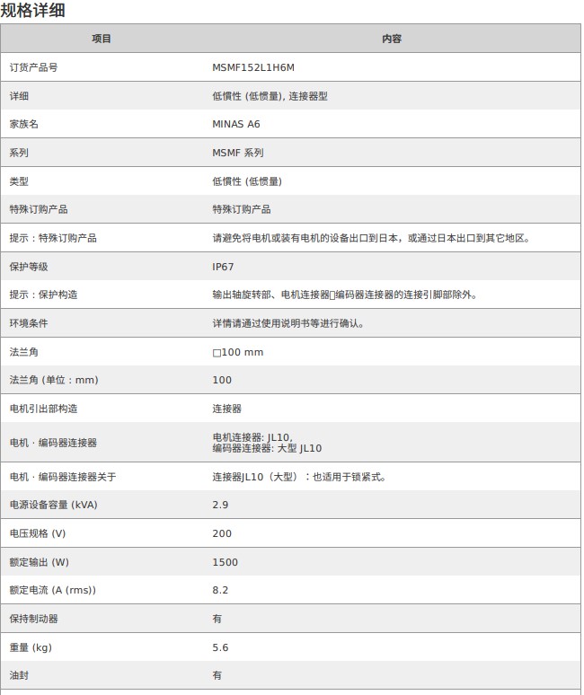 松下伺服電機(jī) MSMF低慣量電機(jī)MSMF152L1H6M 50W-22kW 響應(yīng)頻率3.2kHz都
