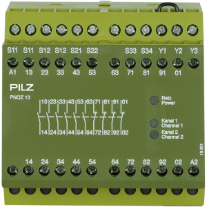 安全繼電器(獨立式),輸入:帶/不帶觸點間短路檢測功能 的1/2通道接線,輸出:6 N/O,4 N/C,UB = 230 - 240 V AC/DC, 寬度:90 mm,集成式螺絲端子,監控急停裝置和 安全門,反饋回路。