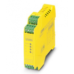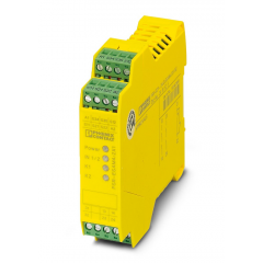 安全繼電器(獨立式),輸入:帶/不帶觸點間短路檢測功能 的1/2通道接線,輸出:3 N/O,1 N/C,1 SC, 自動/受監控啟動,UB = 230 V AC/24 V DC,寬度:45 mm, 集成式螺絲端子,監控急停裝置,反饋回路, 安全門。
