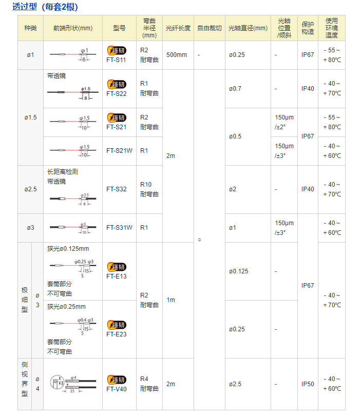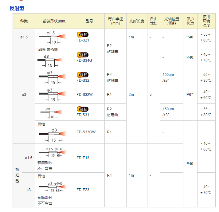 松下光纖傳感器 圓柱型光纖FD-E13 反射型 強韌