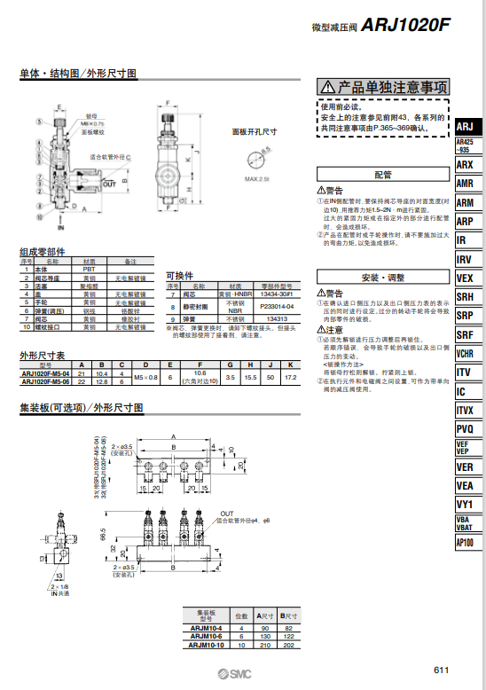 SMC微型減壓閥ARJ1020F-M5-06