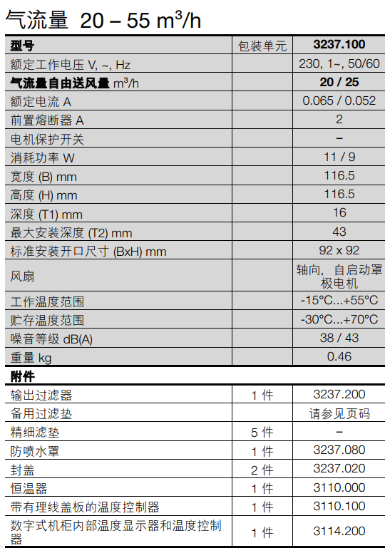 威圖機柜配件Rittal過濾器風扇氣流量22-50m³/h型號3237.100