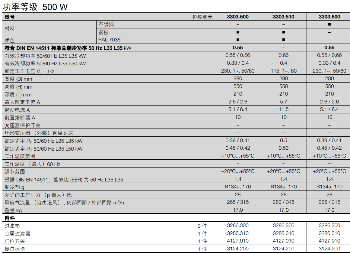威圖機柜空調Rittal壁掛式冷卻設備/功率等級500W型號3303.500